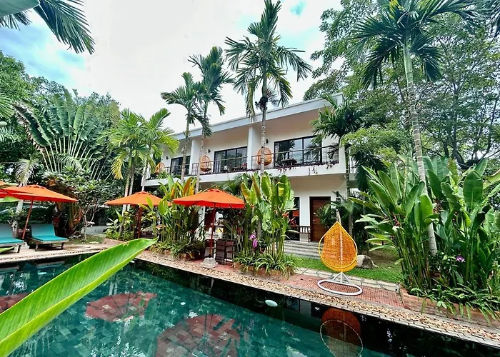 ヴィラはシェムリアップから車で10分で、パブストリートから車で15分です。 この別荘は、観光客だけでなく信者にも人気のワット プレア プロム ラットから3.2キロメートルです。